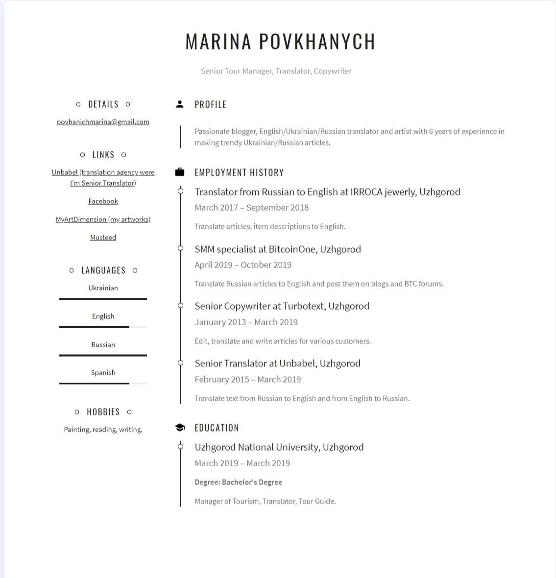 Резюме Англоязычный копирайтер