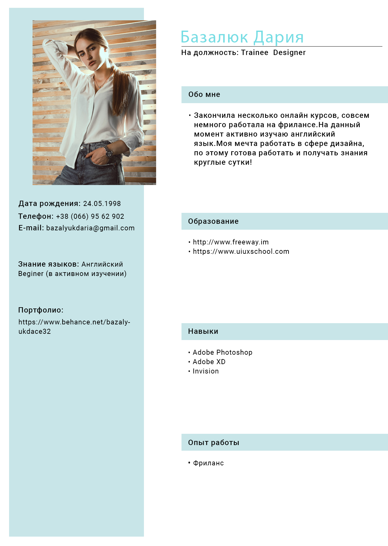 Резюме Trainee Designer