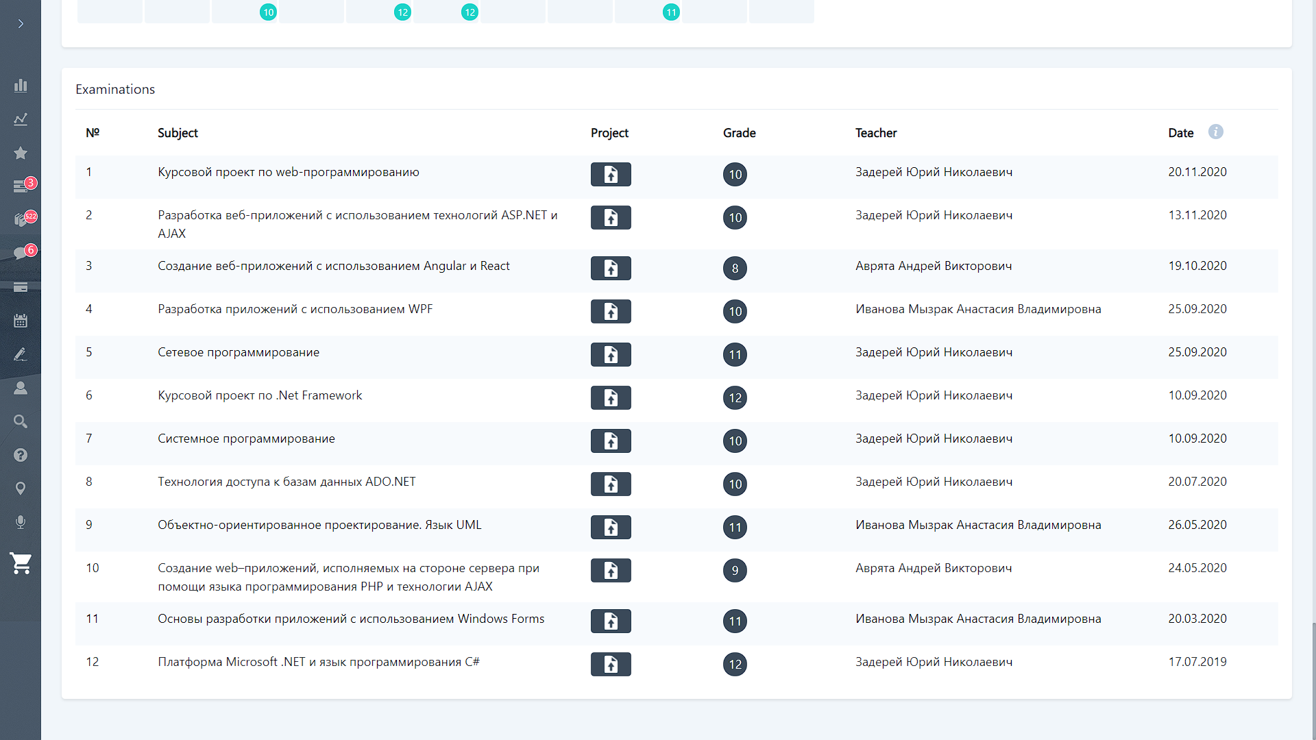 latest examination grades .