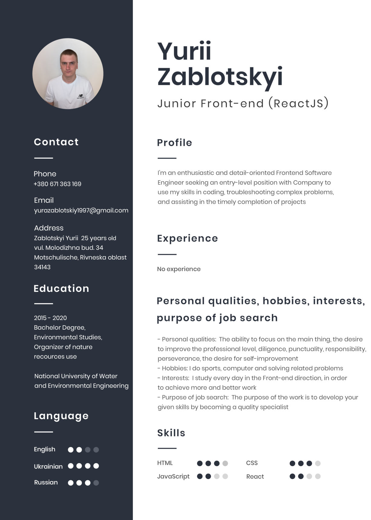 Резюме Junior Frontend Developer