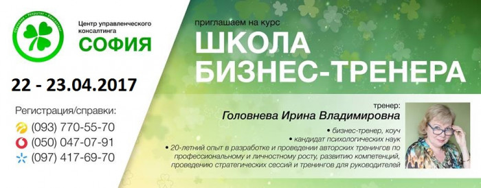 Центр управленческого консалтинга «София» приглашает Вас в уникальную авторскую Школу бизнес-тренера с глубоким погружением в технику …